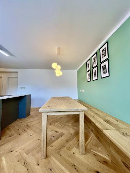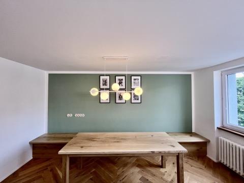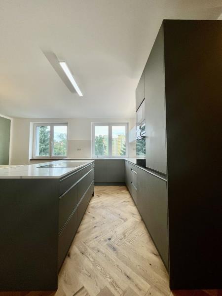 Nabízíme k dlouhodobému podnájmu velmi vkusně a kvalitně zrekonstruovaný byt o dispozici 3+kk a podlahové ploše 73 m². Byt se nachází ve vyhledávané lokalitě v docházkové vzdálenosti od historického centra Frýdku. Moderní rekonstrukce s důrazem na detail Byt prošel kompletní a moderní rekonstrukcí s použitím nadstandardních materiálů. Veškerý nábytek je vyrobený z masivního dřeva, kuchyňská pracovní deska je tvořena z jednoho kusu mramoru. Kvalitní podlahy, nové rozvody elektřiny i interiérové dveře jsou samozřejmostí. Stylově laděné vypínače a zásuvky v retro provedení dodávají interiéru osobitý a elegantní charakter. Dispozice zahrnuje: Prostornou chodbu Otevřený obývací pokoj s kuchyňským koutem a jídelním zázemím Dva neprůchozí pokoje orientované do klidného vnitrobloku (z jednoho vstup na balkon) Koupelnu s vanou, sprchovým koutem, toaletou a bojlerem Součástí kuchyně je plně vybavená linka s vestavěnými spotřebiči (myčka, mikrovlnná a elektrická trouba, digestoř, sklokeramická varná deska), kuchyňský ostrůvek a jídelní stůl s lavicí a úložným prostorem. Koupelna navíc disponuje chytrým zrcadlem s Bluetooth reproduktorem pro bezpečný a pohodlný poslech hudby. Lokalita Byt se nachází pár minut chůze od historického centra Frýdku. V okolí je výborná občanská vybavenost: lékaři, školy, školky, nemocnice, restaurace a obchody. Volný čas můžete trávit procházkami k soutoku řek Ostravice a Morávky, v nedalekých parcích nebo v okolní přírodě. V blízkosti najdete také: Arboretum a Faunapark Zámek Frýdek – Muzeum Beskyd Sportovní areály: Prestige Tennis Park, TJ Slezan, Basketpoint, Stadion Stovky, Hala Polárka Další informace Měsíční nájemné: 19 700 Kč Služby a energie (včetně pojištění bytu): 5 219 Kč Celkové měsíční náklady: 28 819 Kč Vratná kauce: možnost rozdělení do dvou splátek Sklep součástí nájmu Parkování k dispozici naproti domu Byt je ihned k nastěhování Podmínky nájmu Majitel preferuje zájemce bez domácích mazlíčků.