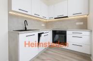 Dominantou bytu je světlý a velkorysý obývací prostor, který přirozeně zve k odpočinku i setkávání s blízkými. Kuchyň je skutečným srdcem domova – rohová linka s vestavěnými spotřebiči, decentním LED podsvícením a myčkou působí nejen stylově, ale i maximálně prakticky. Nechybí ani dostatek prostoru pro lednici, takže vše má své místo a nic neruší čistý design.