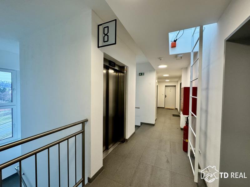 Bytová jednotka o CP 75 m2 se nachází v osmém patře osmipatrového cihlového domu s výtahem.