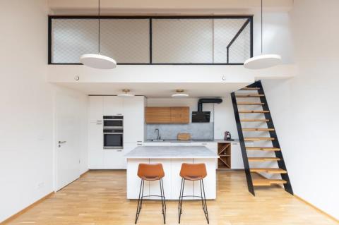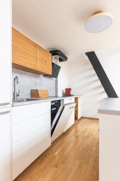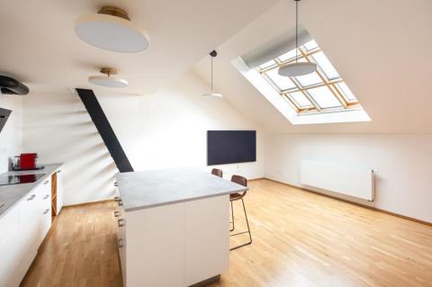 Nabízíme k dlouhodobému pronájmu světlý moderní byt v atraktivní lokalitě širšího centra na Praze 2 v blízkosti metra I. P. Pavlova. Byt se nachází v posledním patře nově zrekonstruovaného činžovního domu s výtahem, což zajišťuje dostatek soukromí i příjemnou atmosféru podkrovního bydlení. Díky střešním oknům je interiér velmi světlý a působí vzdušně. Wind free klimatizace k dispozici. Byt se pronajímá jako nevybavený, nicméně k dispozici je plně vybavená kuchyň včetně všech spotřebičů a poskytnuta je rovněž pračka se sušičkou. Dispozice nabízí otevřený obývací pokoj s kuchyňským koutem a obytným prostorem na rozlehlé galerii a samostatnou ložnici. Moderní koupelna je vybavena umyvadlem se zrcadlem, velkým sprchovým koutem a toaletou. Celkové provedení bytu je čisté, moderní a praktické. Lokalita nabízí veškerou občanskou vybavenost v docházkové vzdálenosti, včetně restaurací, kaváren, obchodů i služeb. Výborná dopravní dostupnost je zajištěna nejen metrem, ale i tramvajovými linkami, které umožňují rychlé spojení do všech částí Prahy. Nájemné: 35 000 Kč Poplatky: 5 457 Kč + přepis elektřiny Kauce: 52 500 Kč Provize RK: 35 000 Kč Byt je ideální pro jednotlivce nebo pár, kteří hledají moderní bydlení v centru města s výbornou dostupností. K nastěhování dle dohody.
