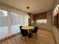Nabízíme k pronájmu výjimečný plně vybavený byt 3+kk o podlahové ploše 76 m², situovaný ve 4. patře bytového domu s výtahem, v Českém Krumlově. Jedná se o byt pro klienty, kteří hledají vysoký standard bydlení, komfort a soukromí. Interiér bytu byl kompletně navržen a realizován ve spolupráci s bytovou designérkou. Každý detail je promyšlený, provedený na míru a laděný do nadčasového a elegantního stylu. Dominantou bytu je prostorný obývací pokoj propojený s moderní kuchyní, který působí velmi vzdušně a příjemně. Z obývací části je vstup na terasu s výhledem do klidné části, vybavenou zahradním nábytkem, ideální pro relaxaci. Kuchyňská linka na míru je osazena kvalitními vestavnými spotřebiči, včetně myčky nádobí, vyvýšené trouby, mikrovlnné trouby a lednice s mrazákem. Byt nabízí komfortní ložnici a další samostatný pokoj vhodný jako dětský pokoj, pracovna nebo pokoj pro hosty. Velkým benefitem je množství úložných prostor v podobě vestavěných skříní na míru. Koupelna je řešena ve vysokém standardu a disponuje jak vanou, tak sprchovým koutem, toaleta je samostatná. Samozřejmostí je pračka a sušička, kvalitní sedací souprava a kompletní vybavení, které umožňuje okamžité nastěhování bez nutnosti dalších investic. Součástí pronájmu je parkovací stání v podzemních garážích a sklepní kóje. Byt je vhodný pro pár nebo rodinu, kteří hledají klidné a komfortní bydlení s výbornou dostupností do centra Českého Krumlova a zároveň mimo jeho ruch.