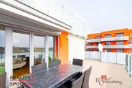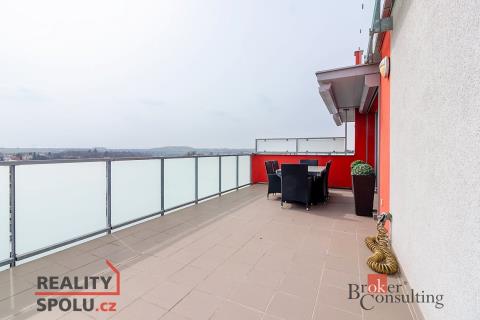 Nabízím k pronájmu kompletně zařízený moderní vzdušný byt 3+kk s ohromnou terasou, balkonem, garážovým stáním a prostorným sklepem. Byt se nachází v předposledním podlaží třípatrového domu s výtahem v moderním komplexu Šafránka v lokalitě Praha - Řeporyje. Plocha bytu je 76 m2, terasa má 35m2, balkon 12m2. Současné dispoziční uspořádání bytu nabízí obývací pokoj s otevřenou kuchyní, jídelnou a přístupem na velkou terasu s krásným výhledem do zeleně, hlavní ložnici s další menší terasou a druhou ložnicí, koupelnu, wc. V ceně pronájmu je parkovací stání v podzemní garáži a komora, v domě je výtah. Byt je volný k nastěhování od 15.1.2025. Preferujeme dlouhodobé zájemce. Měsíční nájem 35 000,-Kč, aktuální zúčtovatelné zálohy na služby a poplatky 4500,- Kč/měsíc. Elektřina bude převedena na nájemníka. Vratná kauce ve výši 2 měsíčních nájmů. Provize realitní kanceláři jeden měsíční nájem + DPH. Výborná dopravní dostupnost: ke stanici metra Luka 5 minut. Veškerá občanská vybavenost - školy, školky, obchody. Těším se na společnou prohlídku, velice ráda Vás provedu.
