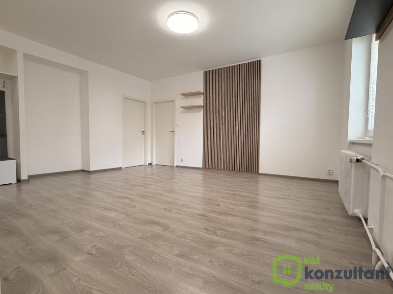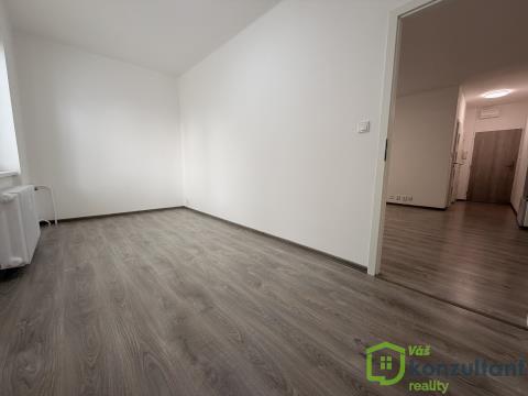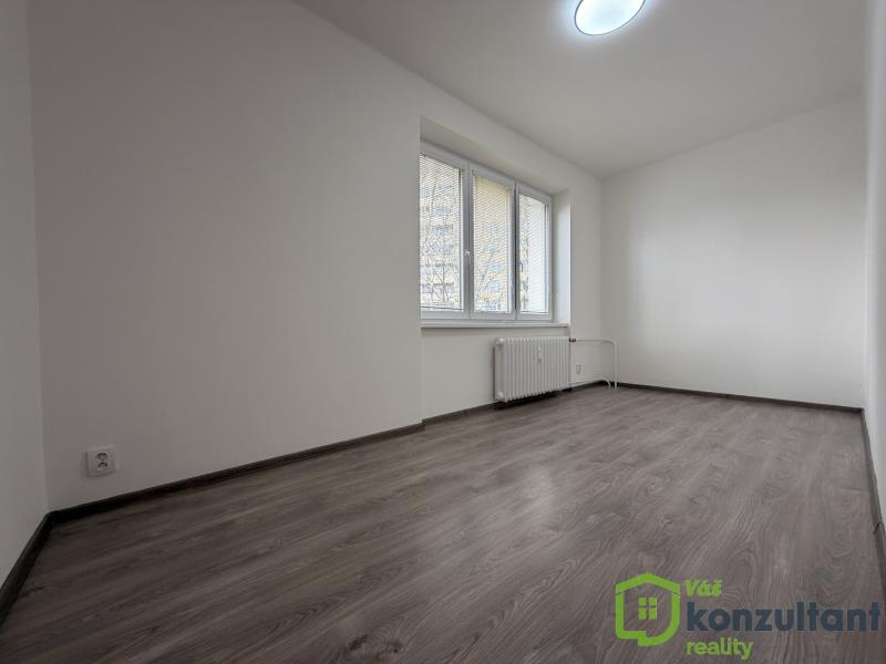 Dispozice bytu je praktická a dobře řešená. Kuchyňský kout je propojen s prostorným obývacím pokojem, což vytváří vzdušný a otevřený obytný prostor. Byt je orientován na tři světové strany, takže působí svěže, světlě a příjemně po celý den.