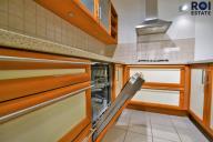 Kuchyňský kout je plně vybaven – plynový sporák, elektrická a mikrovlnná trouba, myčka, lednice, digestoř i dostatek úložného prostoru pro všechno, co má mít své místo.