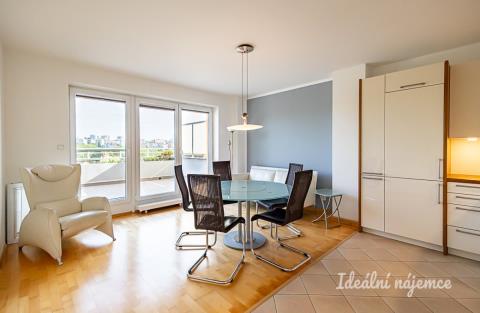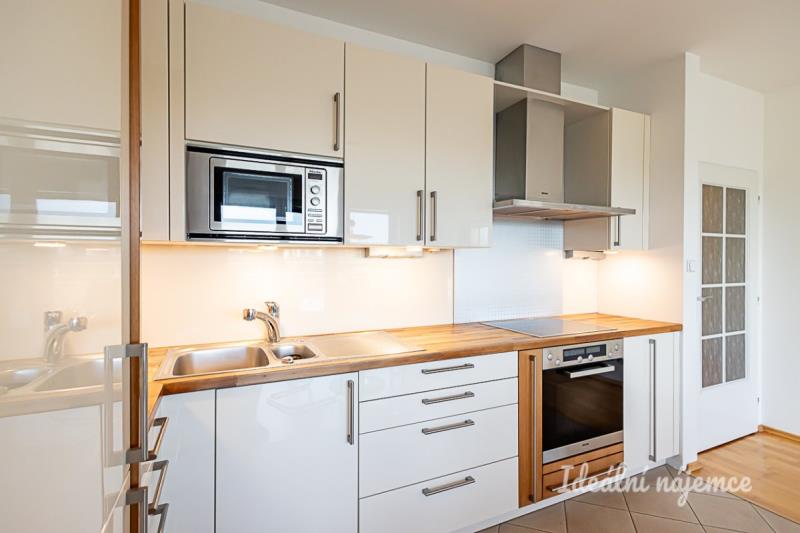 K dlouhodobému podnájmu Vám nabízíme krásný, vybavený byt o dispozici 3+kk, 85m2 + 30m2 terasa, ve velmi klidné, přesto dobře dopravně dostupné lokalitě pražských Záběhlic. Byt se nachází v přízemí udržovaného cihlového domu s recepcí. Díky zapuštění domu do svahu přesto nejste u země. Skládá se z velké centrální chodby zařízené šatní skříní. Ložnice s postelí, komodou a samostatnou koupelnou. Dále je zde dětský pokoj a obývací pokoj společný s kuchyňským koutem a vstupem na jižně orientovanou terasu s krásným výhledem. Druhá koupelna je zařízena toaletou, pračkou a sušičkou. Kuchyně je zařízena všemi vestavnými spotřebiči - lednice, myčka, varná deska, trouba a digestoř. Dále se byt nabízí zařízený tak, jak vidíte na fotografií. K bytu náleží garážové parkovací stání. Byt se nachází v klidné lokalitě Záběhlic, na konci neprůjezdné ulice. Jen pár kroků od domu je základní škola. Na začátku ulice se nachází OC Květ, kde najdete základní občanskou vybavenost a Tesco Sepermarket. Nejbližší autobusová zastávka (Poliklinika Zahradní Město) je od domu cca 5 minut chůze. Byt je k dispozici od 1.2.2026. Zálohové platby už obsahují zálohy na elektřinu a pojištění domácnosti.