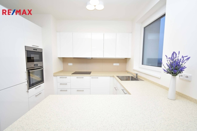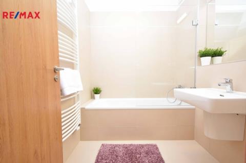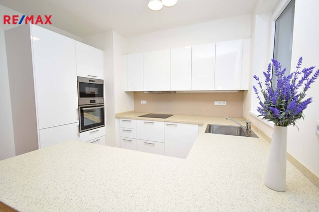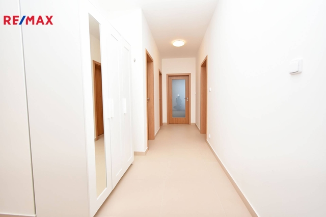 Součástí pronájmu je i vybavení bytu: v chodbě domofon a šatní skříň, ložnice č. 1 se samostatnou terasou včetně psacího stolu bílé barvy vysoký lesk, ložnice č. 2 se vstupem na terasu včetně šatní skříně a koženková bílá manželská postel s čelem (včetně roštů, matrací a s úložným prostorem), obývací pokoj se vstupem na terasu včetně sedací souprava zn. Ikea a žaluziemi v oknech, 2x terasa včetně elektro zásuvka a kohout na vodu na terase, terasa komplet zasklená, posuvné okenice, podlahová krytina dlažba, kuchyňský kout s komplet kuchyňskou linkou vyrobenou truhlářem na míru včetně vestavěných spotřebičů (lednice s mrazákem, trouba, mikrovlnná trouba, myčka, indukční varná deska a digestoř), dále jídelní stůl + 4 židle. Tento luxusní byt nabízí potřebný prostor pro spokojený domov a pohodlí. Byt je velmi světlý a slunný.