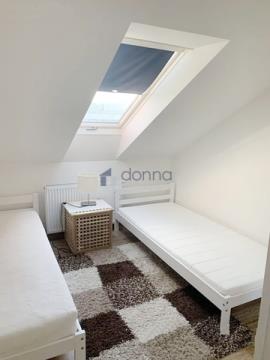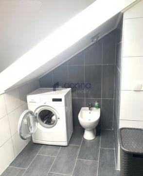 Pronájem zařízeného půdního byu 3+kk, o ploše 81m2 s lodžií, v podkroví v rodinném domě, ulice Schoellerova, Praha 9 - Čakovice. Celá půdní vestavba byla realizovaná v roce 2014. Dům je v sousedství velkého zámeckého parku s rybníkem. Velký obývací pokoj propojený s kompletně zařízenou kuchyní (lednice, myčka, plynový sporák, trouba, digestoř, mikrovlnná trouba) ze které je vstup na balkon s výhledem na zahradu (zahrada není k dispozici). Dále jsou v bytě dva samostatné pokoje, velká koupelna s rohovou vanou, sprchovým koutem a pračkou, samostatné WC a komora. Byt je kompletně zařízený viz foto v nabídce, úložné prostory v šatních skříních + komora přímo v bytě. Všude v bytě je položená plovoucí podlaha, v koupelně a na WC je podlahové vytápění.V bytě je také nainstalovaná klimatizace. Byt je napojen na vlastní plynový kotel a má vlastní elektroměr, plynoměr i vodoměr. Klidná lokalita plná zeleně s kompletní občanskou vybaveností a velmi dobrou dopravní dostupností do centra Prahy. V bezprostřední blízkosti jsou potraviny, kavárna, cukrárna a restaurace, přímo naproti domu je nově vybudovaný Lidl, Globus 5 minut autem, OC Letňany 10 min autem. Autobusová zastávka necelou minutu pěšky, na metro C Letňany cesta trvá 12 min, vlakem do centra 20 min. Volný ihned. Nájem 25.000 Kč + poplatky 7.100 Kč již vč. energií. Kauce 60.000 Kč + provize 1x nájem. Pronajímatel si vyhrazuje právo výběru nájemce.
