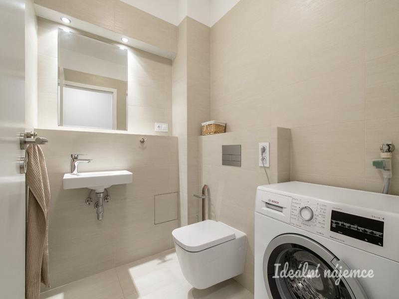 K dlouhodobému podnájmu nabízíme krásný a moderní byt o dispozici 3+kk v oblíbené lokalitě Karlín hned u řeky Vltava. Byt o celkové výměře 87 m2 se nachází ve třetím podlaží novostavby s výtahem. K bytu patří i lodžie směřovaná do vnitrobloku a sklep. V přízemí budovy je k dispozici recepce. Byt se nabízí vybavený. Kuchyně disponuje lednicí, myčkou, elektrickou troubou, varnou deskou, mikrovlnnou troubou a digestoří. Prostorná obývací část se vstupem na lodžii je zařízena pohovkou, konferenčním a televizním stolkem. Součástí ložnice je postel a vestavěná skříň. V druhém pokoji najdeme pracovní stůl s židlí, komodu a válendu. V koupelně je vana, umyvadlo a toaleta. Druhá toaleta je umístěna samostatně. Na chodbě je k dispozici prostorná vestavěná skříň. Výtah vede z recepce či z garáže přímo do bytu přes bezpečnostní dveře. V koupelně je k dispozici podlahové topení a okna disponují venkovními roletami. V okolí domu najdeme restaurace, supermarket Lidl, základní a mateřskou školu, lékárnu atd. Čtyři minuty chůze od domu je vzdálená zastávka metra Křižíkova. Majitel preferuje zájemce bez domácích mazlíčků. Byt je volný k nastěhování 1. 5. 2026. Byt pronajímá Ideální nájemce - služba, se kterou budete bydlet bezstarostně a za férových podmínek. Když se něco přihodí, k dispozici jsou správci, kteří s vámi vše vyřeší. Pomůžeme s veškerou administrativou, s nastavením plateb a zajistíme vám speciální pojištění. Pojďte bydlet s námi!