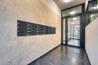 Parkování: garážové stání v mechanickém parkovacím systému, které zajišťuje bezpečné a pohodlné parkování přímo v rezidenci.