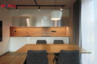 • Obývací pokoj s kuchyní (31,9 m²) – elegantní prostor pro odpočinek i společenská setkání. Dominantou je bílá kuchyňská linka na míru se všemi vestavnými spotřebiči – styl a funkčnost v dokonalé rovnováze.