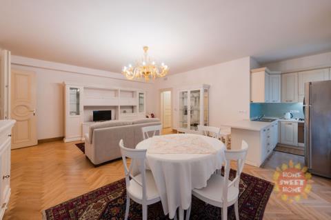 Nabízíme k pronájmu luxusní klimatizovaný apartmán 3+kk v prestižní zóně pražských Vinohrad, jen 50m od nádherného parku s kostelem sv. Ludmily. Apartmán o celkové rozloze 96m2 je koncipován tak, aby uspokojil nejnáročnější z náročných a nabízí prostorný obývací pokoj s plně vybaveným kuchyňským koutem (troubou, lednicí, mrazákem, myčkou nádobí, mikrovlnnou troubou, sklokeramickou deskou, digestoří), 2 ložnice a koupelnu s umyvadlem, vanou a toaletou. Možnost pronájmu garážové stání za příplatek 5000 CZK + DPH. Obyvatelům je k dispozici 24/7 recepce, vrátnice a kamerový systém a odpočinková zóna vyhřívaný venkovní bazén s vodní masáží a saunou a udržovaná krásná zahrada. Výborné spojení s centrem - metro trasa A, autobusová zastávka přímo před domem. Václavské náměstí je pouhých 5 minut chůze. Ihned k dispozici.