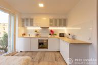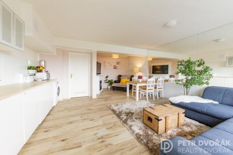 Nemovitost prošla kompletní rekonstrukcí v roce 2018, zahrnující nové rozvody elektřiny, vody a odpadů, nové omítky a repasované dřevěné podlahy. Byt je nabízen kompletně zařízený. Kuchyňská linka je vybavena vestavnými spotřebiči (sklokeramická varná deska, elektrická trouba, myčka, lednice, digestoř). Součástí vybavení je také pračka. Obytný prostor doplňuje sedací souprava a jídelní stůl, v ložnicích jsou manželské postele, šatní skříně budou instalovány.