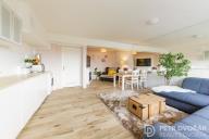 Interiér bytu tvoří prostorný obývací pokoj s plně vybavenou kuchyní, ze kterého je vstup na balkon s otevřenými výhledy na okolní zástavbu Vinohrad, včetně ikonických věží chrámu sv. Ludmily na Náměstí Míru. Dispozici dále doplňují dvě samostatné ložnice, koupelna s vanou, samostatná toaleta a vstupní hala.