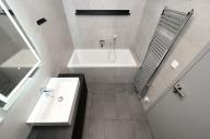 Byt rovněž disponuje dalšími dvěma pokoji, přičemž v jednom z nich se nachází dvě prostorné šatní skříně. Koupelna je vybavena vanou a podlahovým vytápěním. Komfort dále zajišťují rekuperace, klimatizace, hliníková okna s trojskly a venkovní rolety, které zaručují vynikající tepelnou izolaci a soukromí. Všechny materiály a zařízení v bytě jsou ve vysokém standardu, navrženy s ohledem na maximální pohodlí.