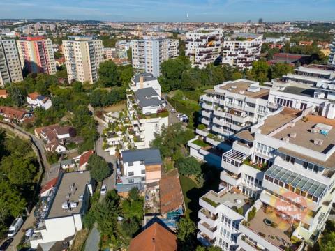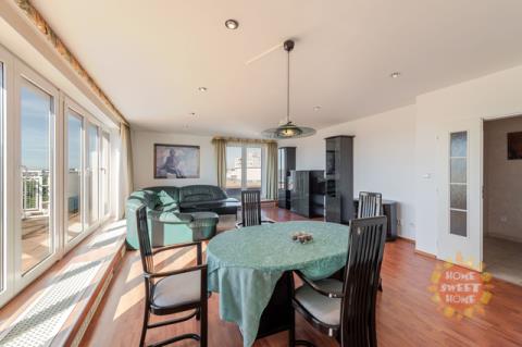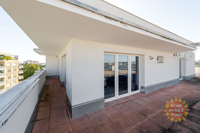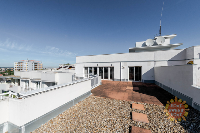 Nabízíme k pronájmu částečně vybavený byt 4+1 o rozloze 130 m² s velkorysou privátní terasou (celkově 507 m²) na střeše domu, který nabízí krásný výhled do okolí Záběhlic a dále. Byt se nachází v 6. nadzemním podlaží novostavby s výtahem v ulici Hyacintová. Bezpečnost bydlení zajišťuje denní ostraha, která vytváří bezpečnou a klidnou atmosféru pro rodiny. Byt je navržen tak, aby splnil potřeby rodin. Byt je částečně vybavený a sestává ze vstupní chodby, šatny, dvou světlých prostorných ložnic a jednoho dětského pokoje, který lze případně upravit na pracovnu, dvou koupelen s toaletou (sprchový kout a vana), prostorného obývacího pokoje s francouzskými okny a vybaveným kuchyňským koutem (myčka, vestavná lednice s mrazničkou, elektrická varná deska a vestavná pečící trouba). Všechny pokoje mají vlastní vstup na rozlehlou střešní terasovou plochu s krásným panoramatickým výhledem do širokého okolí. Terasa o rozloze neuvěřitelných 150 m² poskytuje ideální místo pro rodinné posezení či grilování v teplých měsících. Moderní infrastruktura okolí vám navíc zajistí snadný přístup k obchodům, službám a dalším atrakcím, které zjednoduší každodenní život. Dopravní spojení se světem je zde skutečně nadstandardní. Pouhých 700 metrů od domu je nájezd na pražskou Jižní spojku. Autobusy MHD Vás do 7 minut dovezou na metro A Strašnická a za 15 minut na metro C Pankrác. S ohledem na všechny výhody a výbornou lokalitu se tento byt stává atraktivním domovem pro rodiny, které hledají pohodlí a bezpečnost. Součástí nabídky je virtuální prohlídka bytu (Matterport). V případě zájmu o prohlídku nás neváhejte kontaktovat.