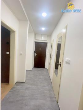 Pronájem bytu 4+1 86m2 v ulici Střimelická Praha 4 Spořilov. Byt se nachází v přízemí cihlového udržovaného a nově i zatepleného domu s výtahem. Byt je nově zrekonstruovaný. Bezpečnostní dveře vás zavedou do vstupní chodby, která má novou vinylovou podlahu a místo na botník. Toaleta je zvlášť, koupelna má nový sprchový velký kout, žebrové topení, umyvadlo, zrcadlo, teplé stoupačky. Vinylová podlaha vede až do samostatné kuchyně (8,75m2) s oknem a novými barevně laděnými moderními materiály. Zde je nová kuchyňská linka s místem na pračku (může být zakoupena), dále je zde mikrovlnka, dřez, velká vestavná myčka, plynový sporák s el. troubou, digestoří, spíží, oknem a místem na lednici (může být zakoupena).