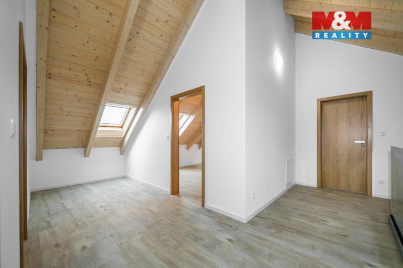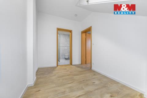 Nabízíme k pronájmu zcela nový mezonetový byt 4+kk o ploše 146 m² v centru Domažlic. Byt se nachází v novostavbě - budete prvními obyvateli. Dispozice je rozdělena do dvou podlaží. Spodní patro tvoří prostorný obývací pokoj s moderní kuchyňskou linkou vybavenou kvalitními vestavěnými spotřebiči (trouba, varná deska, digestoř, mikrovlnná trouba, lednice s mrazákem, myčka nádobí). V bytě jsou dvě samostatné koupelny – každé patro má vlastní koupelnu se sprchovým koutem a toaletou, což zajišťuje maximální komfort a soukromí. Horní podlaží nabízí klidovou část se třemi pokoji a otevřeným prostorem s přiznanými dřevěnými trámy. Byt je velmi světlý a vzdušný. Velkou předností je možnost využití výtahu se vstupem z ulice a možnost dodatečného pronájmu pozemního parkovacího stání. Kompletní občanská vybavenost v docházkové vzdálenosti. Ideální pro náročné klienty hledající nadstandardní bydlení v centru města. Majitel si vyhrazuje právo vybrat nájemce dle vlastního uvážení