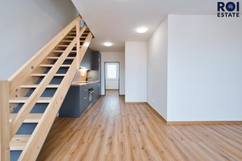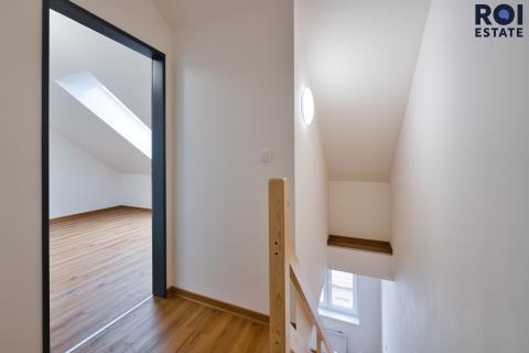Právě zde nabízíme velmi citlivě zrekonstruovaný mezonetový byt 4 + kk (cca 100 m²) ve 3. patře bez výtahu.