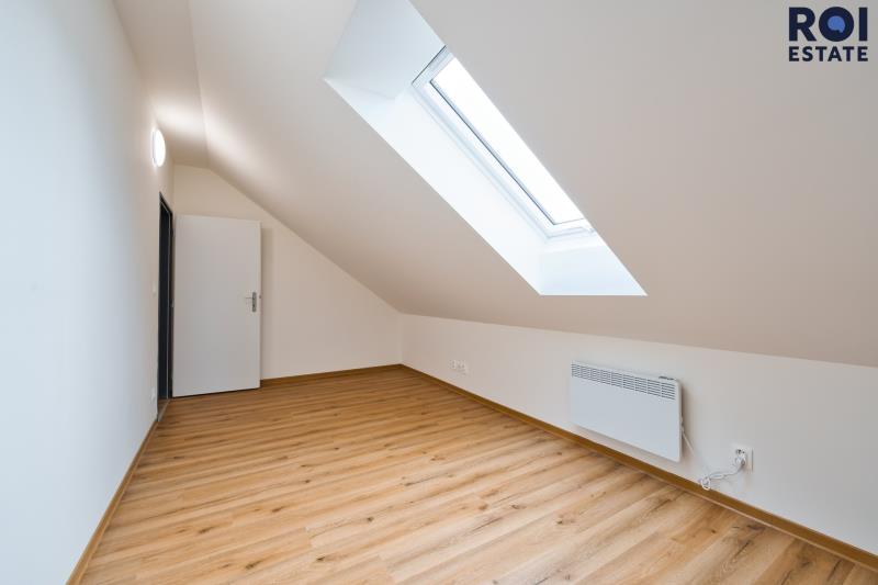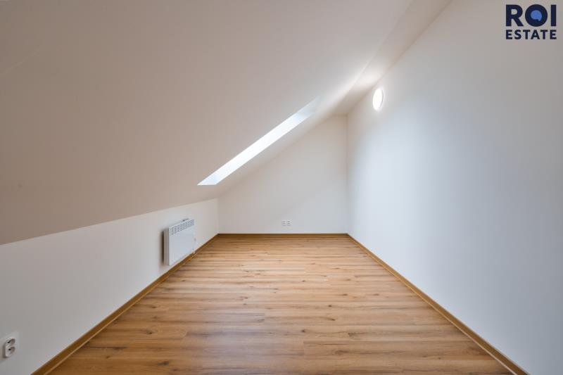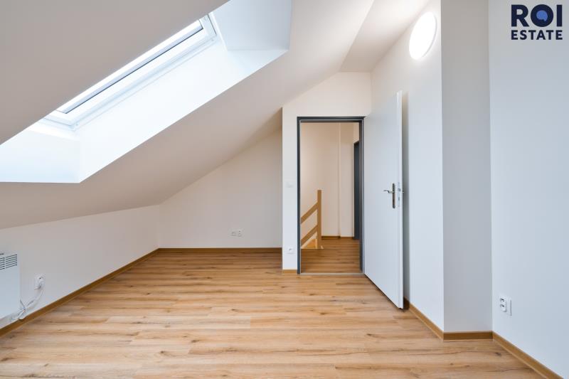 Po dřevěných schodech vystoupáte do horní části bytu, kde se nacházejí další dvě samostatné podkrovní ložnice.