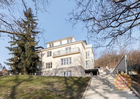 Krásný byt 4+kk se dvěma balkony k pronájmu o celkové rozloze 107m² se nachází ve druhém patře zrekonstruovaného rodinné vily z 30.let (bez výtahu) v ulici Plzeňská, Praha 5. Byt se nachází v klidné rezidenční lokalitě mezi oblíbeným parkem Ladronka a golfovým hřištěm Motol. Zastávka tramvaje ,,Kotlářka" se nachází pár minut chůze od domu. Nad domem je krásný lesopark s vyhlídkou Skalka. V bytě je obývací pokoj s kompletně vybavenou kuchyňskou linkou ( sklokeramická deska, elektrická trouba, mikrovlnná trouba, lednice s mrazničkou a myčka), pracovna, ložnice s vlastní prosklenou koupelnou (sprchový kout, toaleta), 2× ložnice, další samostatná koupelna s masážní vanou, saunou, sprchovým koutem a toaletou. K dispozici je krásná udržovaná společná zahrada (1000 m²) s možností využití pro obyvatele domu. Na podlaze je vytápěná dlažba a dřevěné parkety, vytápění plynovým kotlem. Parkováné možno jen v rámci modré zóny Prahy 5. Ihned k pronájmu.