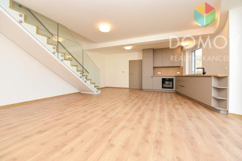Nabízíme k pronájmu jedinečný, zcela nový mezonetový byt 4+kk o podlahové ploše 108 m², který se nachází v posledním, 4. nadzemním podlaží novostavby s výtahem v klidné okrajové lokalitě Berouna. Byt nabízí velkorysé prostory a dvě venkovní plochy – balkon a unikátní terasu o velikosti 67,6 m². Dispozice Přízemí: • Vstupní chodba • Samostatná toaleta • Prostorný obývací pokoj s kvalitní a plně vybavenou kuchyňskou linkou • Balkon 3,6 m2 Patro (přístupné po designových dřevěných schodech): • Koupelna s vanou • Druhé WC • Dva samostatné pokoje • Pracovna • Velká terasa 67,6 m² s krásným výhledem na zelené kopce Vybavení bytu • Teplovodní podlahové vytápění pomocí moderních tepelných čerpadel • Regulace vytápění prostorovým termostatem • Tepelně izolační trojskla s venkovními elektricky ovládanými žaluziemi • K bytu náleží prostorný zděný sklípek 5,7 m2 • Součástí nájmu je vlastní parkovací stání v garáži, kam se pohodlně vejdou dvě auta za sebou Lokalita a občanská vybavenost • Klidná lokalita Na Máchovně na okraji Berouna • Nájezd na dálnici D5 do 5 minut jízdy • Do Prahy se dostanete za 20 minut • Nedaleko se nachází autobusová zastávka • V blízkosti sportovní centrum Eden, nákupní centrum, mateřská i základní škola K pronájmu máme v domě i další byty o dispozicích 2+kk - 4+kk, všechny nové, světlé, s balkony a terasami, sklepem a parkovacím místem. Kuchyně zhotovené na míru, podlahové vytápění, venkovní žaluzie, využití tepelných čerpadel a další moderní prvky dělají bydlení nejen komfortní, ale i energeticky nenáročné. Majitel z důvodu nového nadstandardního vybavení bytu upřednostní zájemce bez zvířat. Volné ihned.
