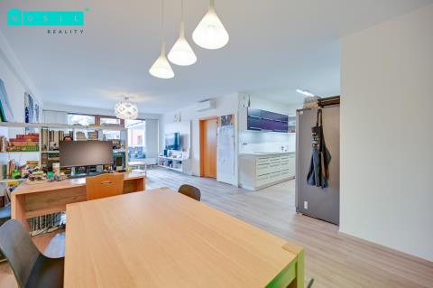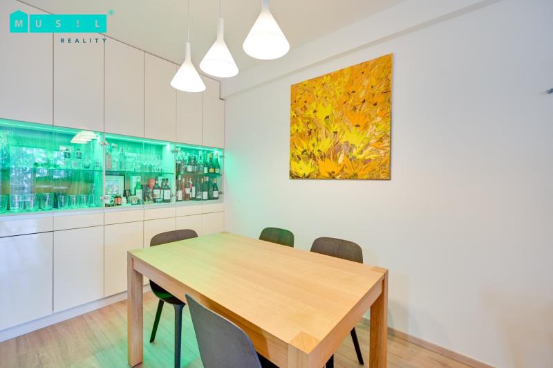 Nabízíme k pronájmu nadstandardní byt o dispozici 4+kk na ulici Rokycanova v Olomouci. Byt se nachází ve 2. patře moderního bytového domu v těsné blízkosti centra města, parku a obchodního centra. Užitná plocha bytu činí přibližně 112 m, k bytu náleží dvě prostorné terasy o celkové výměře 28 m, které poskytují výjimečný komfort bydlení. Dispozičně velmi zajímavým prvkem je soukromá sauna, která rozděluje jednu z teras na dvě samostatné části, díky čemuž má každý z pokojů vlastní venkovní prostor. Terasa je navíc vybavena zatahovací zástěnou pro maximální soukromí. Byt je orientován na severní a jižní stranu, je vybaven klimatizací a vnitřními žaluziemi ve dvou pokojích a vnitřními panelovými závěsy v dalších dvou pokojích. Byt je částečně vybavený. V předsíni se nachází vestavěné skříně, v obývacím pokoji je vestavěná úložná stěna a designová LED stěna za televizí. Kuchyňská linka je plně vybavena spotřebiči elektrickou troubou, varnou deskou, digestoří, myčkou nádobí a mikrovlnnou troubou. Po dohodě je možné přenechat i stávající lednici za poplatek přímo současnému nájemníkovi. Byt disponuje dvěma koupelnami hlavní koupelna je vybavena vanou a WC, dále je k dispozici samostatné WC a druhá koupelna se sprchovým koutem, která je součástí hlavní ložnice, čímž vzniká komfortní rodičovský apartmán. Ke každému pokoji náleží vlastní terasa. Součástí bytu je také prostorná komora umístěná na stejném patře. K bytu náleží kryté podzemní parkovací stání přímo pod domem, které je velkou výhodou v této lokalitě. Lokalita nabízí výjimečnou dostupnost centrum města, park, obchody, služby i MHD jsou v bezprostřední blízkosti. Byt tak kombinuje klidné a komfortní bydlení s městským životním stylem. Nájemné činí 26.900 Kč měsíčně včetně parkovacího stání, zálohy na služby jsou ve výši 5.400 Kč měsíčně. Elektřina bude přepsána na nového nájemníka. Kauce je stanovena ve výši dvou měsíčních nájmů. Provize realitní kanceláře odpovídá jednomu měsíčnímu nájmu plus DPH. Byt je k nastěhování od 1. 4. 2026 a je ideální pro větší rodinu, která hledá nadstandardní, exkluzivní bydlení s relativně nízkými provozními náklady. Pro více informací nebo sjednání prohlídky kontaktujte makléře zakázky.