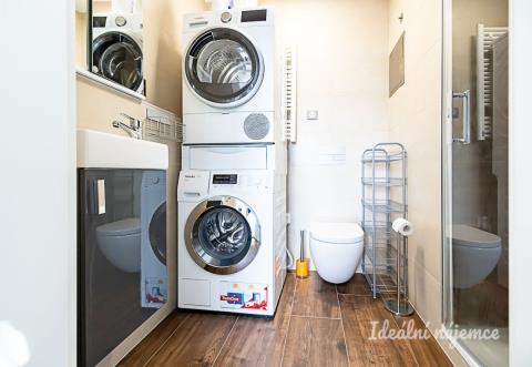 Nabízíme k dlouhodobému podnájmu nadstandardní, moderní a velmi světlý byt o dispozici 4+kk, který se nachází v klidné a žádané lokalitě Praha 3 – Strašnice. Byt o celkové výměře 112 m² je situován v 7. patře udržovaného bytového domu a jeho dominantou je nádherná terasa doplněná balkonem, které nabízejí příjemný venkovní prostor pro relaxaci i výhledy do okolí. K bytu náleží také praktický sklep a vlastní parkovací stání v suterénu budovy. Interiér je nabízen jako nezařízený, což budoucím nájemníkům poskytuje ideální příležitost uzpůsobit si bydlení přesně podle vlastního vkusu a potřeb. Srdcem domova je velkorysý obývací pokoj s jídelním koutem, který je již vybaven sedací soupravou a konferenčním stolem. Na něj navazuje moderní kuchyňská linka se všemi spotřebiči včetně lednice s mrazákem, elektrické a mikrovlnné trouby, varné desky, digestoře a myčky. Dispozici doplňují další tři samostatné neprůchozí pokoje, které mohou sloužit jako ložnice, dětské pokoje nebo pracovna. Velkou výhodou jsou dvě koupelny – první je vybavena vanou, umyvadlem a toaletou, zatímco druhá disponuje sprchovým koutem, druhou toaletou a je v ní umístěna pračka i sušička. V předsíni je toaleta pro hosty. Okolí domu nabízí kompletní občanskou vybavenost a skvělé zázemí pro rodiny i aktivní jedince. Přímo v sousedství se nacházejí supermarkety Penny a Albert, lékařská péče, restaurace i široký výběr škol a školek, z nichž jedna se nachází přímo v areálu. Pro volný čas a sport je ideální blízký Malešický park. Výbornou dopravní dostupnost zajišťují autobusové spoje, které vás během několika minut dovezou na stanici metra linky A Želivského nebo přímo do centra města na Florenc. Byt je volný k nastěhování ihned.