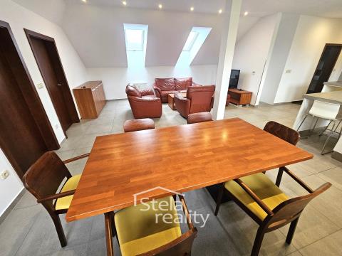 Nabízíme k pronájmu zařízený byt o dispozici 4+kk, 160 m2, v budově hotelu Hermes, Ježník, Krnov, 1 p./1p. Byt je po celkové rekonstrukci - plastová okna, venkovní žaluzie, na podlahách koberce a keramická dlažba, kuchyňská linka včetně spotřebičů (trouba, indukční varná deska, myčka, digestoř a lednice), interiérové dveře i zárubně, sádrokartonové podhledy s osvětlením, pochozí soumraková světla, prostorná koupelna disponuje vanou i sprchovým koutem. Byt se pronajímá zařízený - nábytek z masivu - jídelní stůl, židle, komody, konferenční stůl, stolek pod televizi, 2x dvoulůžková postel, šatní skříně, noční stolky, křesla, kožená polohovací sedací souprava, botníky, 2 x televize, pračka a sušička. Součástí bytu je šatna a dvě chodby. K dispozici je jedno parkovací místo v areálu hotelu. Nájem činí 18.000,- Kč, služby (elektřina, topení, teplá i studená voda, satelitní televize, WiFi) jsou max. ve výši 5.000 Kč. Klidné prostředí s krásným výhledem. Možnost dlouhodobého pronájmu. Požadována vratná kauce (jistota). Volný ihned. Makléř doporučuje prohlídku!