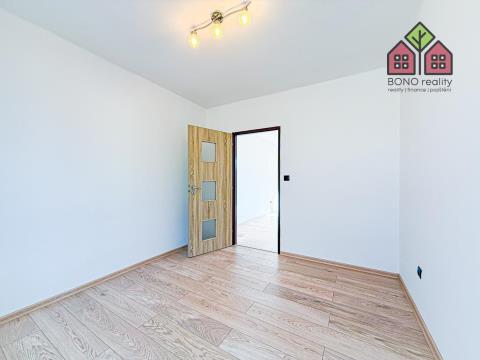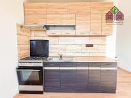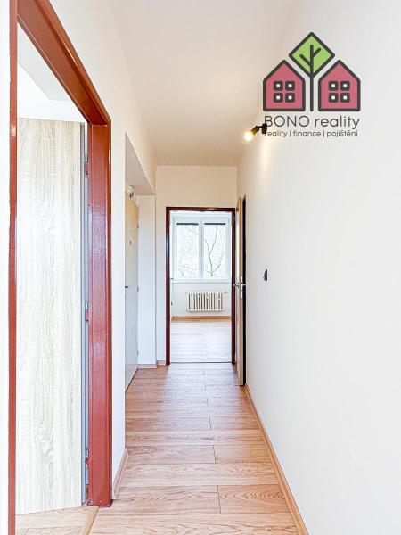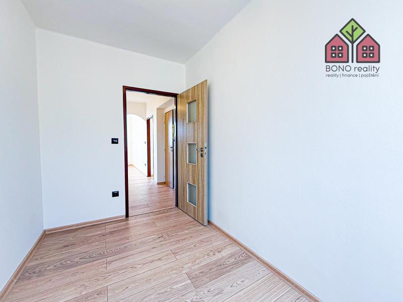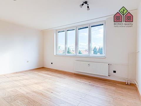 Obývací pokoj je přirozeně největší místností bytu a vkusně propojený s kuchyňským koutem. Kuchyňská část je vybavená zánovní kuchyňskou linkou a spotřebiči -> elektrická trouba s plynovým sporákem a digestoř. Ložnice je standardních rozměrů a disponuje také vstupem na lodžii o výměře 2 m2, ze které je pěkný výhled na město a přilehlé pahorkatiny. Zbylé dva pokoje je možné využít jaké dětské či jako pracovna, případně pokoj pro hosty. Oba dokáží pohodlně pojmout veškerý potřebný nábytek a vybavení. Koupelna se zděným bytovým jádrem, které je obložené pěkným keramickým obkladem je vybavená sprchovým koutem, umyvadlem s koupelnou skříňkou i zrcadlem a místem pro pračku. Toaleta je samostatná a situovaná u vstupu do bytu, kde najdeme také komoru, resp. šatnu. K bytu náleží sklepní kóje o výměře 3 m2.
