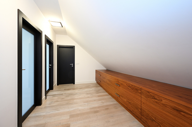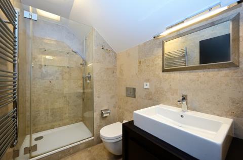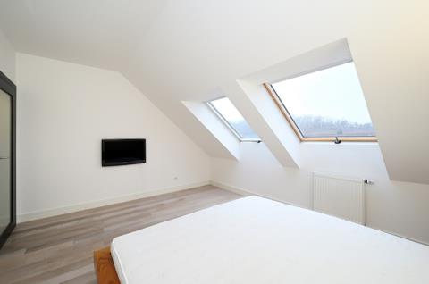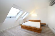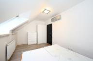 V horním patře bytu se nachází další dvě ložnice a koupelna se sprchovým koutem. Celkově tak byt disponuje čtyřmi ložnicemi, což z něj činí ideální volbu pro větší rodinu nebo pro ty, kteří pracují z domova a chtějí některý pokoj využít jako kancelář.