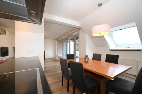 K dlouhodobému pronájmu zde nabízím prostorný mezonetový byt o dispozici 5+kk s celkovou podlahovou plochou 141,7 m² a terasou o velikosti 17,7 m². Součástí pronájmu je také jedno garážové stání, které je již zahrnuto v ceně nájmu. Byt se nachází ve 4. nadzemním podlaží s výtahem a díky mezonetovému řešení poskytuje dostatek prostoru i soukromí pro větší rodinu.