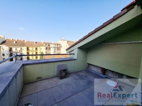 Nabízíme k pronájmu prostorný mezonetový byt o velikosti 5+kk/Terasa, o celkové ploše 166 m2, situovaný v 5. NP (poslední patro) s výtahem v bytovém domě v Praze 2 - Vinohrady, ul. Máchova. Ve spodním patře bytu je velký obývací pokoj s kuchyňskou linkou, dvě ložnice, prádelna, koupelna s vanou, sprchovým koutem a WC, dále druhé samostatné WC a prostorná chodba s úložnými prostory. V horním patře jsou dvě samostatné ložnice. Kuchyňská linka je vybavena vestavnými spotřebiči: varná deska, pečící trouba, digestoř, myčka, mikrovlnná trouba. Terasa je orientovaná do klidného vnitrobloku. Topení v bytě je ústřední (vlastní elektro-kotel). Lokalita se skvělou občanskou vybaveností - obchody, školy, školky, lékaři atd. i skvělým spojením do centra Prahy - tramvají cca 5 min. Doporučujeme.