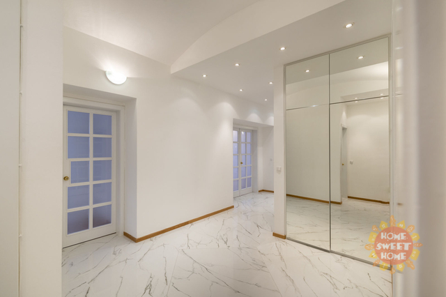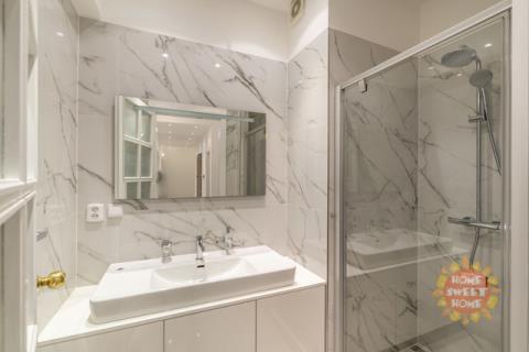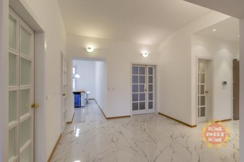 Zcela nově zrekonstruovaný krásný byt 6+1 k pronájmu, nezařízený po kompletní rekonstrukci o celkové výměře 200 m2, který se nalézá ve čtvrtém nadzemním patře nádherného secesního domu s výtahem na Rašínově nábřeží č. 58, který patří k jedněm z nejkrásnějším domů na nábřeží. V bytě se nachází prostorná vstupní hala s vchody do jednotlivých neprůchozích pokojů, plně zařízená kuchyň (lednice, mrazák, varná deska, digestoř, trouba, myčka na nádobí, vinotéka a pračka), dvě koupelny vybavené (v jedné rohová vana a WC, druhá je se sprchovým koutem). Další WC samostatné zvlášť. Podlahy jsou pokryty novou dřevěnou podlahou a velkoformátovou dlažbou. Nájemníci mají k dispozici vlastní bazén o velikosti 6 x 11 m s celoročním provozem, vířivou lázeň, saunu a posilovnu v prostorách domu. V suterénu je k dispozici kulečník, šipky a malý bar pro příležitostné použití. V domě je 24 hodinová ostraha, která se stará o klidné a nerušené bydlení v domě, společné prostory jsou monitorované kamerou. V přízemí domu se nachází restaurace "U Kalendů" s výbornou kuchyní a také pekárna, kde mají každý den výborné čerstvé a křupavé pečivo. Možnost pronájmu garážového stání v nedalekých garážích za 5.000 Kč/měsíc. Úžasná lokalita v centru Prahy, výborná dostupnost do všech pražských částí, kompletní občanská vybavenost. Ihned k dispozici. Doporučujeme prohlídku!