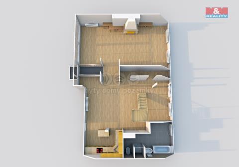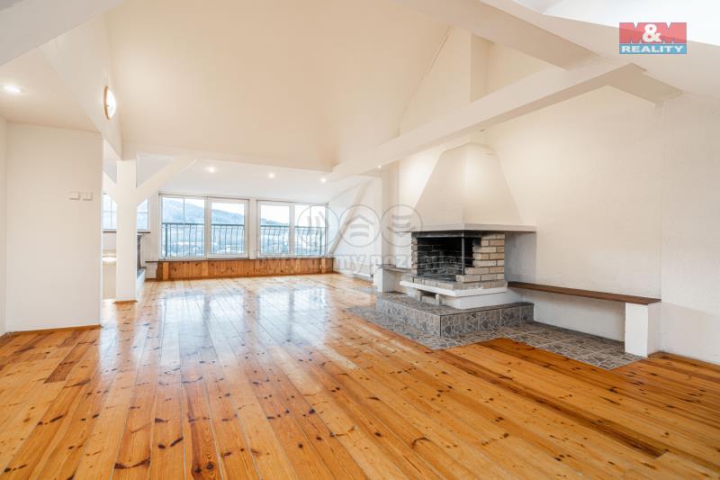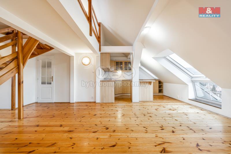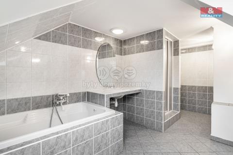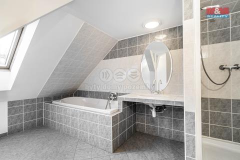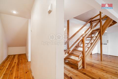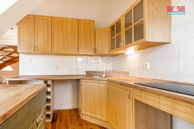 Nabízíme pronájem atypického mezonetového bytu o dispozici 1+kk a výměře cca 147 m2 situovaného v zatepleném podkroví zděného domu v oblíbené a žádané lokalitě Děčín - Nové Město, ul. Kamenická. Byt prošel rekonstrukcí s novou kuchyňskou linkou s dřezem a baterií, el. sporákem a sklokeramickou deskou (2021) a koupelnou s vanou i sprchovým koutem a toaletou. V obývací části je krb (momentálně nefunkční), prostory pro šatnu a dřevěné schodiště do patra určeného pro spaní. Lakovaná dřevěná podlaha. Plastová okna a dřevěná střešní okna Velux zajišťují nejen dostatek světla, ale také krásný výhled do okolí. O vytápění a ohřev vody se stará kombinovaný plynový kotel. S bytem lze také využívat zahradu za domem, parkovací místo po dohodě . Jedná se o reprezentativní bydlení nedaleko centra v dosahu chůze veškeré občanské vybavenosti. Měsíční nájem 14.000,-Kč + záloha na el. (1.800,-Kč), plyn (4000,-Kč) a vodu (500,-Kč), vratná kauce 28.000,-Kč, provize RK 14.000,-Kč. Byt volný od 10/2025.