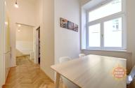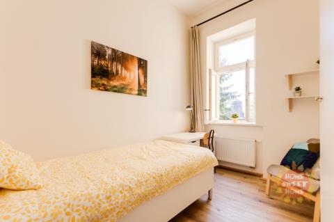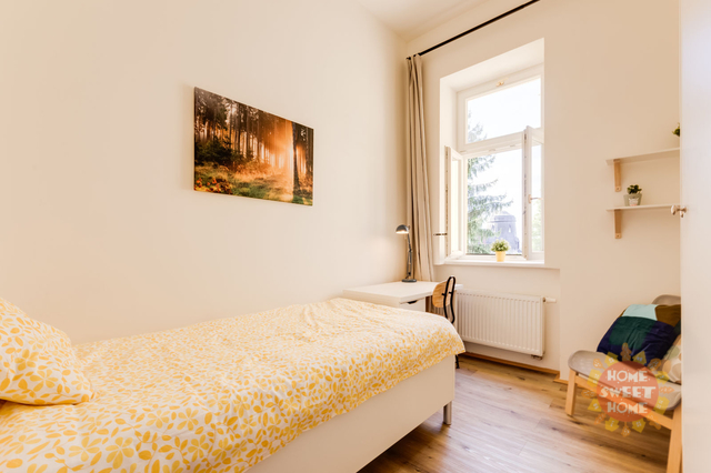 Nabízíme krásný, plně zařízený pokoj o velikosti 12 m², který se nachází v 1.patře residence Řehořova, Žižkov. Byt prošel kompletní rekonstrukcí. Pokoj je součástí šestipokojového bytu s plně vybavenou kuchyní, jídelním koutem, dvěma koupelnami a samostatnou toaletou. Společné prostory jsou kompletně vybaveny včetně žehličky, úklidových pomůcek a dalších potřeb pro běžný provoz. Samotný uzamykatelný pokoj je vybavený postelí, pracovním stolem, šatní skříní, přikrývkou a polštářem. Internet a úklid společných prostor (1× týdně) jsou již zahrnuty v ceně nájmu. Dům se nachází v oblíbené lokalitě blízko centra, jen pár minut od Vysoké školy ekonomické. V okolí je výborná občanská vybavenost - kavárny, restaurace, obchody a další. Dopravní dostupnost - 5 minut na stanici tramvají Viktoria Žižkov (1 stanice na metro Hlavní nádraží, linka C, 3 zastávky na Václavské náměstí). V blízkosti je několik rozsáhlých parků - Mahlerovy sady, Vítkov a Riegrovy sady. Bydlení je vhodné především pro studenty na střednědobý pronájem. Pokoj je volný od začátku února 2026.