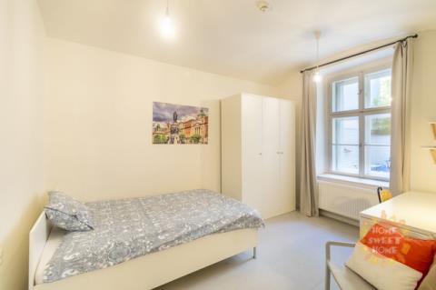 Krásný, zařízený pokoj 13m² se společnou, zařízenou kuchyní s jídelním koutem, koupelny se sprchou a toaletou se nachází v Residenci Kinských ve sníženém přízemí cihlového domu v ulici nám.Kinských, Praha 5. Dům prošel kompletní rekonstrukcí roku 2019. Pokoj i byt je kompletně zařízený, včetně žehličky, prkna a vybavení na úklid. Nachází se ve 3 pokojovém bytě s 2 koupelnami a extra toaletou. Úklid společných prostor je již zahrnut v ceně nájmu, a to jednou týdně. Dále je také k dispozici zcela zdarma fitness, prádelna (na mince) a společná terasa. Bydlení se nachází ve velice lukrativní lokalitě přímo v centru města a v těsné blízkosti zahrady ,,Kinských" a parku ,,Petřín". Výborná občanská vybavenost : obchodní centrum Anděl, Cinema City Nový Smíchov, školy, restaurace , bary a mnoho dalšího. Výborné dopravní spojení: 200m na tram. zastávku ,, Újezd", 10min chůze stanice metra Anděl nebo pět zastávek tram. na vlakové nádraží ,,Praha – Smíchov". Vhodné především pro střednědobý pronájem. K dispozici od začátku ledna 2026. K dispozici více pokojů k pronájmu. Pro bližší informace kontaktujte makléře.
