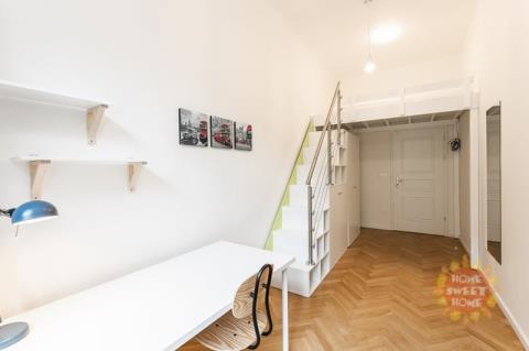 Nabízíme krásný, plně zařízený pokoj o velikosti 14 m² s patrem na spaní, který se nachází v 1. patře cihlového domu v rezidenci Kinských na náměstí Kinských, Praha 5. Dům prošel kompletní rekonstrukcí v roce 2019. Pokoj je součástí čtyřpokojového bytu s plně vybavenou kuchyní, jídelním koutem, dvěma koupelnami a samostatnou toaletou. Společné prostory jsou kompletně vybaveny včetně žehličky, úklidových pomůcek a dalších potřeb pro běžný provoz. Samotný uzamykatelný pokoj je vybavený pracovním stolem, šatní skříní, přikrývkou a polštářem. Internet a úklid společných prostor (1× týdně) jsou již zahrnuty v ceně nájmu. Nájemníkům je dále k dispozici fitness, prádelna (na mince) a společná terasa. Rezidence se nachází ve velmi oblíbené lokalitě v těsné blízkosti centra města, nedaleko zahrady Kinských a parku Petřín. V okolí je vynikající občanská vybavenost – obchodní centrum Anděl, Cinema City Nový Smíchov, školy, restaurace, bary a mnoho dalšího. Rovněž dopravní dostupnost je výborná: tramvajová zastávka Újezd (200 m), metro Anděl (10 minut chůze) nebo vlakové nádraží Praha–Smíchov (5 zastávek tramvají). Bydlení je vhodné především pro studenty na střednědobý pronájem.Pokoj je volný od 4.února 2026.