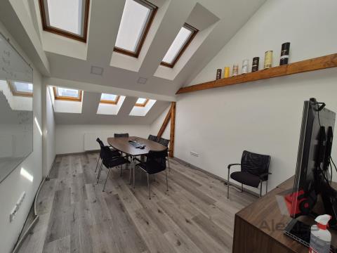 Podnájem atypického podkrovního bytu s galerií 140,9 m2, Sinkulova, Praha 4, Nusle. Nabízíme k podnájmu prostorný a světlý podkrovní byt 4+kk s galerií o celkové výměře 140,9 m2, který se nachází ve 4. patře cihlového domu bez výtahu na adrese Sinkulova, Praha 4 Nusle. Dispozice bytu 4+KK - Centrální obytná část s kuchyňským koutem 42,22 m2 - samostatný pokoj 16,24 m2 - samostatný pokoj 18,66 m2 - Galerie (otevřený prostor nad obývací částí) 38,12 m2 - Koupelna s toaletou 4,37 m2 - Technická místnost 3,55 m2 - Chodba 8,42 m2 - Schodiště 9,35 m2 - Celková podlahová plocha: 140,93 m2 Vybavení a stav - Byt prošel kompletní rekonstrukcí před 3 lety. - Kuchyňská linka v moderním bílém designu, včetně vestavěných spotřebičů - Plovoucí podlahy v celém bytě - Střešní okna zajišťující dostatek denního světla - Přiznané dřevěné trámy dodávají prostoru jedinečný charakter - Topení plynový kotel s radiátory - Klimatizace - Společná zahrada ve vnitrobloku domu Další informace - Byt bude volný od 1. 2. 2026 - Nájemné: 33 000 Kč / měsíc - Služby: dle počtu osob + převod energií (plyn+ elektřina) na podnájemce - Kauce: 1 měsíční nájem - Provize RK: 1 měsíční nájem - Energetická třída G (dočasně, po dodání průkazu bude uvedena skutečná hodnota) Lokalita - Velmi žádaná a klidná část Prahy 4, Nuslí s výbornou dopravní dostupností. - Metro C - Pražského povstání, cca 300 m pěšky - Kompletní občanská vybavenost v okolí obchody, restaurace, školy, parky - Parkování v zónách pro rezidenty, možnost roční parkovací karty. Neváhejte a volejte.