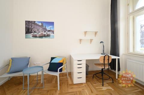 Nabízíme krásný, plně zařízený pokoj o velikosti 16 m² s manželskou postelí, který se nachází ve zvýšeném přízemí cihlového domu v rezidenci Kinských na náměstí Kinských, Praha 5. Dům prošel kompletní rekonstrukcí v roce 2019. Pokoj je součástí čtyřpokojového bytu s plně vybavenou kuchyní, jídelním koutem, dvěma koupelnami a samostatnou toaletou. Společné prostory jsou kompletně vybaveny včetně žehličky, úklidových pomůcek a dalších potřeb pro běžný provoz. Samotný uzamykatelný pokoj je vybavený manželskou postelí, pracovním stolem, křeslem, šatní skříní, přikrývkou a polštářem. Internet a úklid společných prostor (1× týdně) jsou již zahrnuty v ceně nájmu. Nájemníkům je dále k dispozici fitness, prádelna (na mince) a společná terasa. Rezidence se nachází ve velmi oblíbené lokalitě v těsné blízkosti centra města, nedaleko zahrady Kinských a parku Petřín. V okolí je vynikající občanská vybavenost – obchodní centrum Anděl, Cinema City Nový Smíchov, školy, restaurace, bary a mnoho dalšího. Rovněž dopravní dostupnost je výborná: tramvajová zastávka Újezd (200 m), metro Anděl (10 minut chůze) nebo vlakové nádraží Praha–Smíchov (5 zastávek tramvají). Bydlení je vhodné především pro studenty na střednědobý pronájem. Pokoj je volný od začátku ledna 2026.