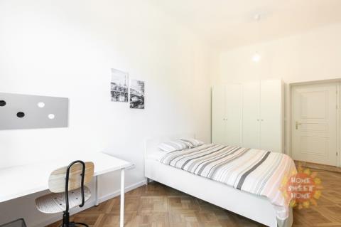 Nabízíme krásný, plně zařízený pokoj s balkonem a manželskou postelí o velikosti 18 m², který se nachází ve 2. patře cihlového domu v rezidenci Kinských na náměstí Kinských, Praha 5. Dům prošel kompletní rekonstrukcí v roce 2019. Pokoj je součástí čtyřpokojového bytu s plně vybavenou kuchyní, jídelním koutem, dvěma koupelnami a samostatnou toaletou. Společné prostory jsou kompletně vybaveny včetně žehličky, úklidových pomůcek a dalších potřeb pro běžný provoz. Samotný uzamykatelný pokoj je vybavený manželskou postelí 160x200cm, pracovním stolem, křeslem, šatní skříní, přikrývkou a polštářem. Internet a úklid společných prostor (1× týdně) jsou již zahrnuty v ceně nájmu. Nájemníkům je dále k dispozici fitness, prádelna (na mince) a společná terasa. Rezidence se nachází ve velmi oblíbené lokalitě v těsné blízkosti centra města, nedaleko zahrady Kinských a parku Petřín. V okolí je vynikající občanská vybavenost – obchodní centrum Anděl, Cinema City Nový Smíchov, školy, restaurace, bary a mnoho dalšího. Rovněž dopravní dostupnost je výborná: tramvajová zastávka Újezd (200 m), metro Anděl (10 minut chůze) nebo vlakové nádraží Praha–Smíchov (5 zastávek tramvají). Bydlení je vhodné především pro studenty na střednědobý pronájem. Pokoj je volný od 19.1. 2026.