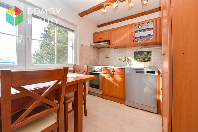 Kuchyňský kout včetně rozkládacího stolu se židlemi disponuje elektrickým sporákem s troubou a myčkou nádobí. Spotřebiče majitel ponechává nájemci k užívání bez závazku jejich případné výměny.