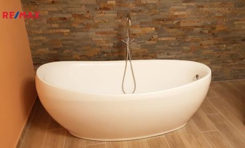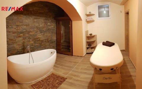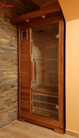 1.pp – z ulice je to suterén, ze zahrady přízemí – pokoj, samostatné WC, koupelna se sprchovým koutem. Prostor je aktuálně vytvořen jako klidová a relaxační zóna s podlahovým topením. Je zde např. i samostatná šatna, infra sauna a vana, spíž, vstup na zahradu.
