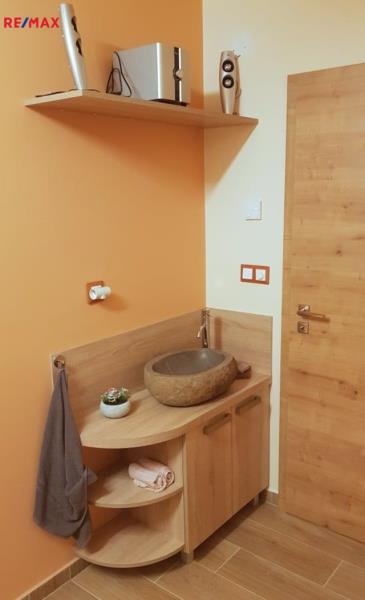 1.np – pokoj, který může být využit jako pracovna (lze i komerčně pronajmout-byla provozovna pedikúry), prostorný obývací pokoj s kuchyní, krbem a vstupem na krytou terasu, koupelna s WC, spíž, schodiště