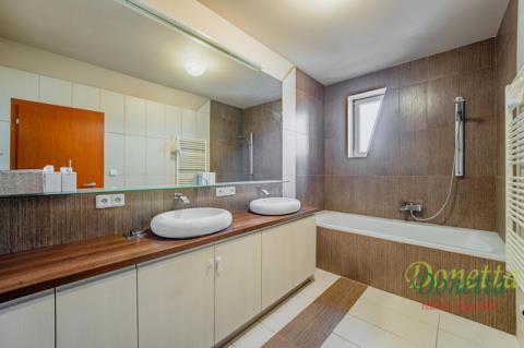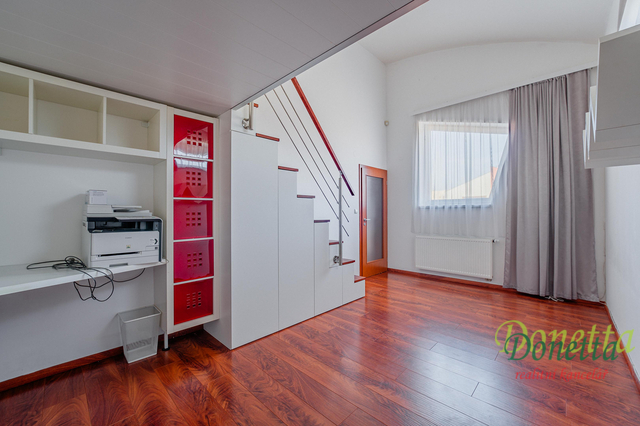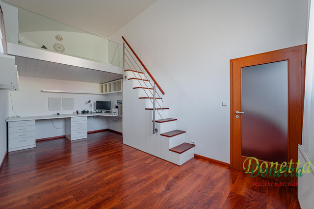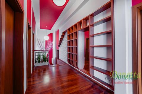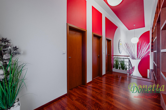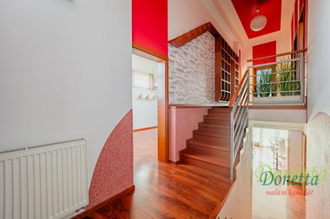 Nabízíme k pronájmu řadový rodinný dům v Hradci Králové ve výjimečné lokalitě v ul. Za Jízdárnou v HK. Jedná se o krajní patrový dům s garáží a technickou místností (cca 12 m2), přes kterou je zajištěn z venku vstup na zahradu. Užitná plocha domu činí cca 144,6 m2 + terasa o výměře cca 20 m2 a garáž cca 18,5 m2. Dispozice: zádveří, chodba, šatna, WC s umyvadlem a prostorný pokoj s kuchyňským koutem o celkové výměře cca 37,46 m2, na který navazuje venkovní terasa (orientovaná na jižní stranu, k dispozici elektrická markýza) a zahrada cca 130 m2. V přízemí se dále nachází technická místnost se vstupem do garáže. V patře se nachází chodba, prostorná koupelna, samostatné WC, šatna a 3 pokoje. V ložnici a v dětském pokoji je k dispozici klimatizace. Kromě garáže jsou k dispozici 2 (3) parkovací stání před domem. V domě se nachází kuchyňská linka včetně vestavných spotřebičů: sklokeramická varná deska, elektrická trouba, mikrovlnná trouba, digestoř a lednička s mrazákem. V technické místnosti je k dispozici pračka a dále je v domě zařízení dle fotografií. Dům se nachází v klidné lokalitě v blízkosti Hradečnice a přírodní památkové zóny na Plachtě 3. Naproti domu je pěší průchod do ul. Rybova. Nájemné činí 35.000 Kč/měsíc plus zálohové platby na služby a energie: ohřev vody a topení 4.000 Kč/měsíc (zdroj tepla horkovod Opatovice), elektřina 2.320 Kč/měsíc, vodné a stočné 500 Kč/měsíc/osoba a internet 340 Kč/měsíc. Při podpisu nájemní smlouvy požadována jistota (kauce) 70.000 Kč. Provize RK ve výši jednoho nájmu. Pronájem je plánován na cca 2 roky, poté je uvažováno o prodeji.