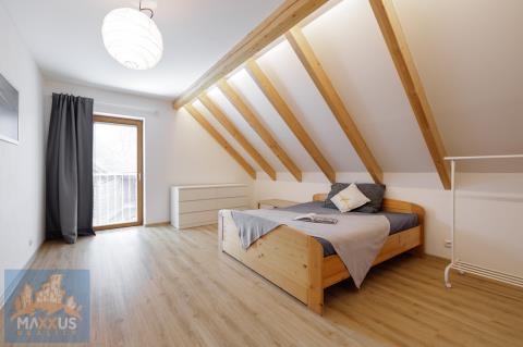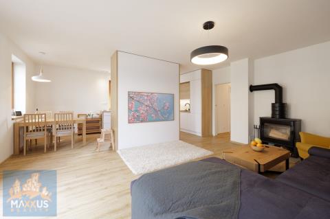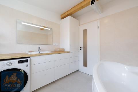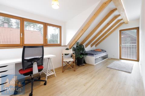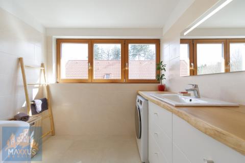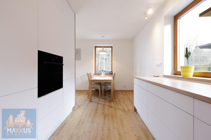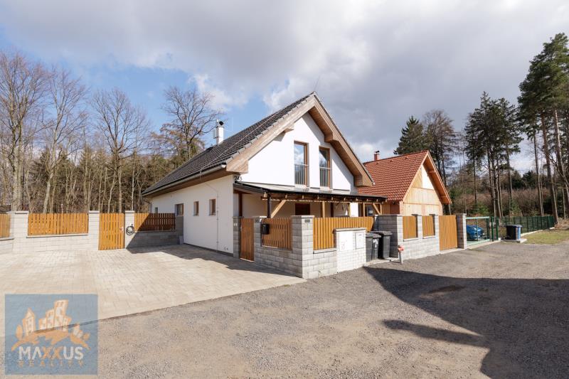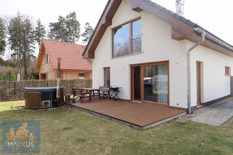Nabízíme k dlouhodobému pronájmu prémiový, samostatně stojící, energeticky nezávislý rodinný dům 5+kk (160 m2) s vlastním wellness, fotovoltaikou a rozlehlou zahradou (817 m2) v malebné obci Hradešín. Dům se nachází v bezprostřední blízkosti lesa, sousedí pouze se dvěma sousedy a poskytuje dokonalé soukromí a klid. Dům je částečně zařízen. Srdcem domu je prostorný obývací pokoj propojený s plně vybavenou kuchyní. Atmosféru a teplo domova umocňují designová krbová kamna. 3 samostatné neprůchozí ložnice. 1 plnohodnotná kancelář, která je ideální pro klidný home office. 2 koupelny. Samostatná šatna, sklad, skříně, prakticky řešená technická místnost pod schodištěm. Dům je vybaven fotovoltaikou a tepelným čerpadlem, což zajišťuje nízké provozní náklady. Domácí wellness - na zahradě na Vás čeká nahřívací koupací sud na dřevo – dokonalá relaxace pod hvězdami po náročném pracovním dni. Užitkovou vodu pro zahradu a wellness zajišťuje vlastní studna a nádrž na dešťovou vodu. Velký skleník, zahradní domek. Pro majitele elektromobilů je připraven wallbox. Bezproblémové parkování na vlastním pozemku s kapacitou až pro 5 vozidel. Obec Hradešín je oázou klidu, ale do civilizace to máte kousek. Do sousedních Úval s plnou občanskou vybaveností dojedete autem za 10 minut. Odtud jezdí každých 15 minut vlak, kterým jste v centru Prahy za 25 minut. Dům je ideální volbou pro nájemce, kteří ocení vysoký standard bydlení, péči o zahradu a klidné prostředí u lesa. Nájemné: 54 000 Kč / měsíc. Služby a energie: 6 000 Kč / měsíc. Kauce: 108 000 Kč. Provize RK: 54 000 Kč + 21% DPH.