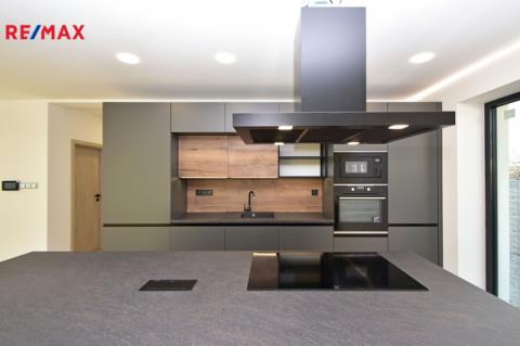 Rodinný dům Vám nabízí velmi prostornou vstupní chodbu včetně luxusní vestavěné šatní skříně a botníkem vyrobené na míru, samostatnou toaletu se vstupem do technické místnosti s tepelným čerpadlem, místem na pračku, sušičku a úklidové prostředky. Dále velmi atraktivní koupelnu se sprchovým koutem, vanou, toaletou a dvoj umyvadlem s kosmetickou skříňkou a zrcadlem. Niky v obkladu koupelny tvoří praktický i designový prvek. Tato koupelna je praktická, maximálně prosvětlená a nabízí dostatek místa pro odpočinek i úložné prostory. V domě naleznete tři samostatné neprůchozí ložnice, z toho hlavní ložnice 17 m2 má svou vlastní šatnu 6,5 m2. Dominantou nemovitosti je obývací pokoj s kuchyňským a jídelním koutem. Kuchyně je vybavena moderními vestavěnými spotřebiči zn. Electrolux včetně myčky, indukční varné desky a velkoobjemové lednice s mrazákem. Obývací pokoj s jídelním a kuchyňským koutem tvoří jeden otevřený prostor, kde jednotlivé zóny plynule navazují a celek působí maximálně prostorně, nadčasově a vzdušně. Celý interiér je laděn v moderních tónech, které podporují pocit tepla. Prostor je ideální pro rodinný život i každodenní relaxaci, s důrazem na funkčnost, estetiku i propojení s exteriérem. Z obývacího pokoje naleznete vstup na terasu a zahradu. V oknech a balkónových dveří do zahrady jsou instalovány venkovní žaluzie, které zajišťují soukromí. Součástí pronájmu je kompletní osvětlení a sedací souprava. Nemovitost je řešena s důrazem na světlost, prostor a eleganci. Rodinný dům je bez předchozího užívání, čeká na prvního nájemce a již se ladí dokončovací práce (podlahové lišty, zahradní domek, plot, vjezdová brána, terénní úpravy atd.).