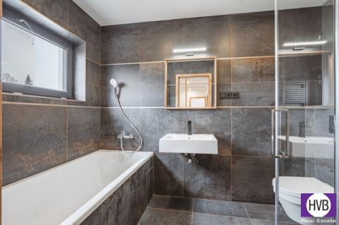 Nabízíme k dlouhodobému pronájmu moderní rodinný dům o dispozici 4+kk s celkovou plochou 110 m². Součástí domu je také zahrada o velikosti 80 m² a terasa 7 m², ideální pro venkovní posezení. Nemovitost se nachází v klidné rezidenční části obce Květnice, ulice Na Ladech, Praha – východ. Přímo naproti domu se nachází rybník, který dodává místu velmi příjemnou atmosféru. Dům je součástí dvojdomu stojícího na rozlehlém pozemku o výměře přibližně 1 800 m². Na pozemku jsou pouze dva dvojdomy, díky čemuž je zde minimální provoz a dostatek soukromí. V přízemí domu se nachází hlavní obytná část – prostorný obývací pokoj propojený s kuchyní. Odtud je přímý vstup na terasu a zahradu. Kuchyňská linka je vybavena spotřebiči (varná deska, digestoř, myčka nádobí a lednice). Dále je v přízemí koupelna se sprchovým koutem a toaletou, technická místnost a úložné prostory. Horní patro nabízí tři samostatné pokoje. Jeden z nich slouží jako hlavní ložnice, další dva mohou být využity jako dětské pokoje, pracovna nebo pokoj pro hosty. V patře je rovněž druhá koupelna vybavená vanou, sprchovým koutem a WC. K domu náleží dvě parkovací stání přímo na pozemku, která jsou zahrnuta v ceně nájmu. Lokalita je ideální pro ty, kteří hledají klidné bydlení v zeleni, ale zároveň chtějí mít dobrou dostupnost do Prahy. V pěší vzdálenosti se nachází park, restaurace s dětským hřištěm i mateřská škola. Kompletní občanská vybavenost je dostupná v nedalekých Úvalech nebo v Újezdu nad Lesy. Doprava do Prahy je pohodlná – autobusové spojení směr Úvaly a Klánovice, odkud jezdí vlak na Masarykovo nádraží (cca 20 minut). Autem je možné dojet na Černý Most nebo do centra Prahy přibližně za 20 minut. Nájemné: 45 000 Kč / měsíc Zálohy na služby: 4 000 Kč / měsíc (včetně energií – elektřina a plyn zůstávají vedeny na majitele) Vratná kauce: 50 000 Kč Provize RK: 45 000 Kč + DPH Majitel preferuje dlouhodobý pronájem. V případě zájmu o prohlídku nebo více informací mě neváhejte kontaktovat.