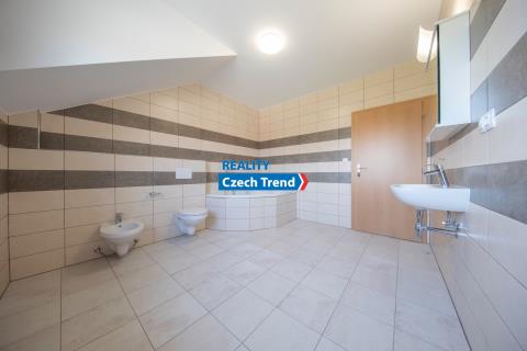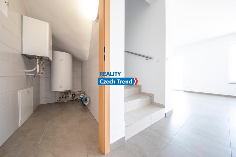 Pronájem novostavby moderního, rodinného domu za cenu bytu. Nabízíme k pronájmu řadový, rodinný dům, 4+kk s garáží a venkovním parkovacím stáním na ulici Šípková v Olomouci. Velmi nízké nájemné je nižší, než nájemné srovnatelně velkého bytu. Měsíční zálohy na elektřinu vč. topení jsou cca 5.000,- Kč, na vodu cca 1000,- Kč. Celková velikost pozemku k domu je včetně zastavěné plochy 262m². Dům je postaven z cihel Porotherm, okna trojskla, značkové armatury Hansgrohe. V přízemí domu je vstupní chodba, koupelna se sprchovým koutem, umyvadlem, toaletou a přípojkou na pračku, technická místnost s elektrickým kotlem a bojlerem na ohřev teplé vody, kuchyňský kout s kuchyňskou linkou obsahující sporák s troubou, digestoř, dřez s baterií a přípravu na myčku, obývací pokoj s francouzským oknem a vstupem na zastřešenou terasu a schodiště do patra. V patře domu jsou tři ložnice a koupelna s vanou, umyvadlem, toaletou, bidetem a přípojkou na pračku. V celém domě je na podlaze dlažba s teplovodním podlahovým vytápěním. Dům je připojen na optický kabel, rozvody internetu a TV signálu jsou v každém pokoji. V místě je veškerá občanská vybavenost a nové, oplocené, dětské hřiště. MHD v dosahu. Volný od 15.4. 2026. Kauce je ve výši dvou měsíčních nájmů, provize pro RK činí jeden měsíční nájem + DPH. Pronajímatel preferuje pracující rodinu bez domácích mazlíčků.