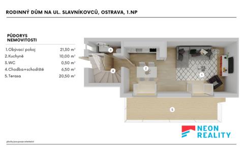 Mám pro Vás moderní dům s kouzlem cihlové zástavby a příjemnou atmosférou soukromí! Rodinný dům ve městě. To je výzva. Tento samostatně stojící rodinný dům o výměře 71 m2 a dispozici 3+kk se nachází v uzavřeném dvoře, kde můžete pohodlně parkovat přímo u domu. Dům je dvoupodlažní a prošel kompletní rekonstrukcí – od fasády přes střechu až po interiér. Nová zateplená fasáda v kombinaci světle žlutého a oranžového odstínu působí vesele a moderně, zároveň však přirozeně zapadá do okolní cihlové zástavby. K obývacímu pokoji přiléhá kovová terasa (20 m2) se zábradlím a přímým vstupem do zahrady – konstrukce je hotová, finální pochozí vrstva čeká na dokončení. Celý pozemek je uzavřen betonovou zídkou, která zaručuje klid a soukromí. Dispozičně dům nabízí velmi příjemné uspořádání. V přízemí se nachází hlavní obytný prostor s kuchyňským koutem a francouzskými okny, které propojují interiér s terasou a zahradou. Kuchyňská linka je vyrobená na míru v elegantní kombinaci bílých horních a šedozelených spodních skříněk. V patře se nacházejí dvě samostatné ložnice. Hlavní ložnice je rohová a díky oknům orientovaným do dvou světových stran působí vzdušně. Druhý pokoj lze využít jako dětský pokoj, pracovnu nebo pokoj pro hosty. Koupelna je elegantní a moderní, laděná do béžových tónů, vybavená sprchovým koutem se skleněnou zástěnou, umyvadlovou skříňkou, velkým zrcadlem, topným žebříkem a závěsnou toaletou. Velkým bonusem je skutečnost, že dům je plně podsklepený – sklep má velikost odpovídající půdorysu celého domu. Tento prostor nabízí skvělé možnosti pro skladování, dílnu, technické zázemí či domácí hobby. K domu náleží zatravněná zahrada se vzrostlými stromy, která je sdíleným prostorem i pro druhý dům na pozemku. I přesto zde vládne naprostý klid a pocit soukromí. Je to místo, které vybízí k posezení na terase, grilování nebo klidnému odpočinku po práci. Interiér je laděný do nadčasových barev, které snadno doladíte vlastním nábytkem a doplňky. Lokalita? Výborná dostupností kamkoli potřebujete! Jen minuta chůze vás dělí od MHD, ať už chcete do centra, na dálnici, do Poruby, Vítkovic nebo Zábřehu – vše je na dosah. Veškerá občanská vybavenost je samozřejmostí. Nájemné: 21.000 Kč/měsíčně. Paušální služby 850 Kč + 300 Kč/os voda + elektřina přepis na nájemce. Parkovací stání 1.500Kč/měsíčně/vůz. Kauce ve výši dvou nájmů včetně služeb. Provize RK činí jeden nájem včetně služeb + 21% DPH. Dům je připravený k nastěhování od nového roku 2026. Ráda vám jej osobně představím a poskytnu podrobné informace. Neváhejte mě kontaktovat – tato nabídka se jen tak nevidí. 🔑