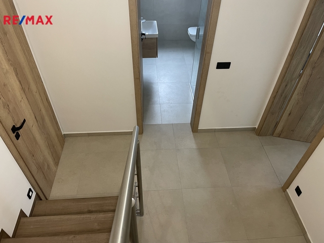 Nabízíme k pronájmu moderní levou polovinu dvojdomku o dispozici 4+kk v klidné a vyhledávané lokalitě Otovice u Karlových Varů. Obě jednotky mají společnou boční stěnu a jsou zrcadlově proti sobě, každá s vlastním vstupem, zahradou a technickým zázemím. K nastěhování od 1.10.2025. Kolaudace proběhne v září 2025. Dům je navržen jako nízkoenergetická novostavba s podlahovým vytápěním v celém interiéru a tepelným čerpadlem. V obývacím pokoji navíc najdete krbová kamna, která vytvoří příjemnou atmosféru během chladnějších dnů. Dispozice - přízemí (62 m2): - Prostorný obývací pokoj se vstupem na terasu a zahradu přes velké francouzské posuvné dveře - kuchyňský kout (bude vybaven novou kuchyňskou linkou) a jídelnou propojen s obývací místností - koupelna se sprchovým koutem a toaletou - technická místnost, schodišťová hala, zádveří - další menší místnost pro individuální využití (např. pracovna, komora) Dispozice - patro (73 m2): - velká ložnice + šatna přiléhající k velké ložnici - dva další pokoje - velká koupelna s vanou i sprchovým koutem a toaletou - schodišťová hala Lokalita: Otovice jsou klidná a žádaná část Karlových Varů, kde žijí převážně rodiny s dětmi. Najdete zde mateřskou i základní školu, víceúčelový sportovní areál a dětská hřiště. Výborná dostupnost do centra města i do přírody je velkou výhodou. Milovníky zimních sportů potěší, že do Krušných hor a lyžařských areálů se autem dostanete přibližně za 30 minut. Sledujte sociální sítě, kde průběžně doplňujeme fotografie a videa ze stavby domu. Podmínky nájmu: Hledáme spolehlivého nájemníka, který ocení pohodlí novostavby a bude o ni pečovat s respektem a zodpovědností. Výběr nájemníka proběhne na základě osobního jednání, v souladu s požadavky a představou vlastníka. Nájemní smlouva bude uzavřena na dobu určitou jednoho roku s možností prodloužení při oboustranné spokojenosti. U podpisu nájemní smlouvy hradíte: Jistota (vratná kauce) 90.000 Kč (3-měsíční) Nájem na první měsíc 30.000 Kč Záloha na služby k bytu / vodné-stočné předpokládáme 500 Kč na 1 osobu Zprostředkovatelský poplatek 36.300 Kč (vč. dph) Služby, které si nájemce přepíše na sebe: Svoz komunálního odpadu-platba podle velikosti nádoby a frekvence u Obecního úřadu Otovice Elektřina-záloha orientačně 4.000 Kč měsíčně